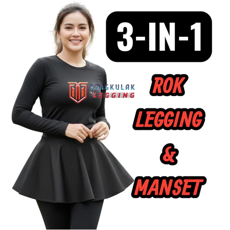 Outfit Komplit 3-in-1 Pakaian Olahraga /1 Set Senam Wanita / Inner Manset / Legging / Rok Perempuan
